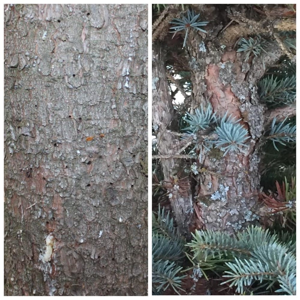 Присмотритесь к коре. Плохой знак — наличие плесени и тёмных пятен. Зато присутствие смолы — показатель здорового дерева.