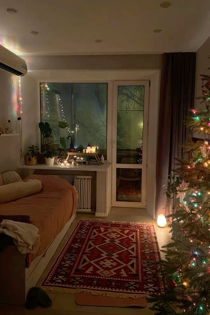 - тёплый свет свечей или гирлянд;