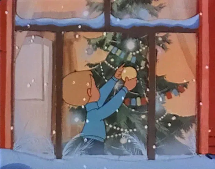В полночь в комнате художников оживают нарисованные персонажи. Они собираются вокруг мальчика, который показывает им свой фильм про ёлочку.