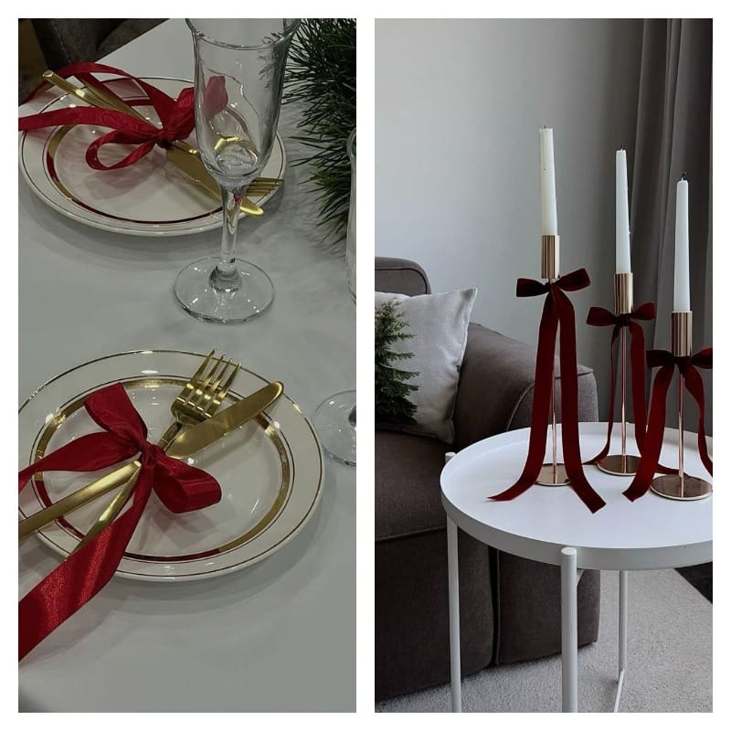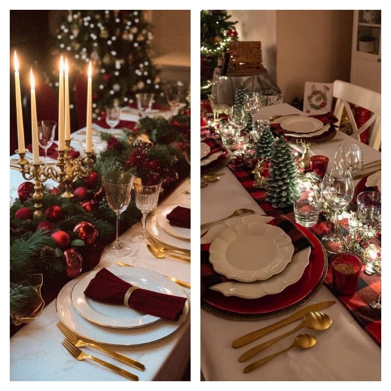 Атмосфера праздничного ужина складывается из деталей — цвета скатерти, блеска посуды и света свечей. Главное — не количество элементов, а их сочетание.